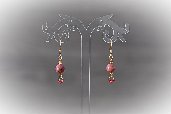 17 - Boucles d'oreilles dorées, perles rhodonites Crochets d'oreilles acier inoxydable doré Perles de rhodonite et fantaisie 10 € |