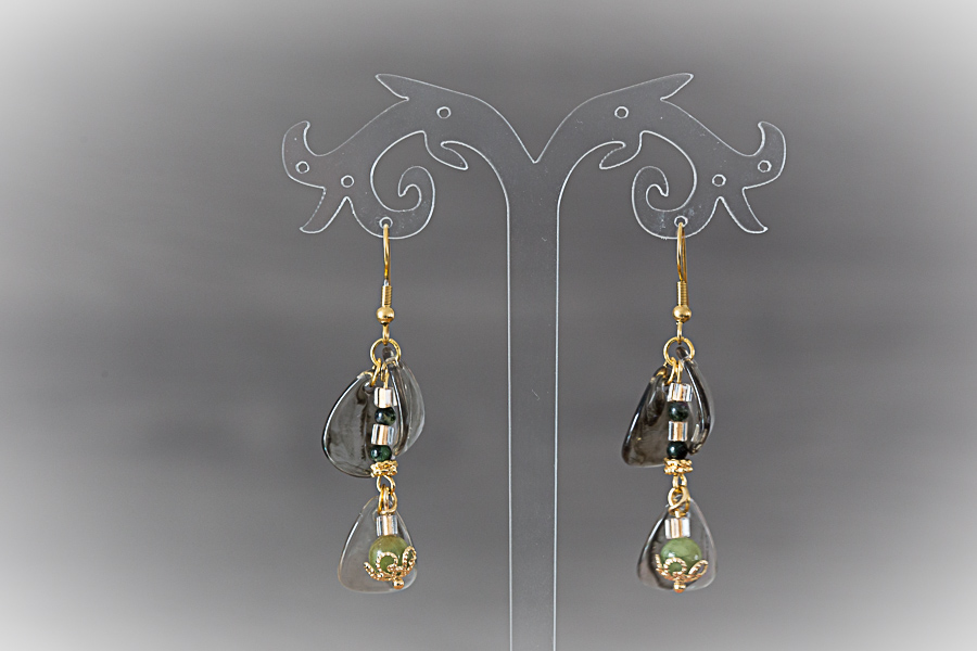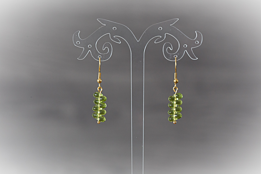A9 - Boucles d'oreilles dorées, gouttes de perles vertes Crochets acier inoxydable doré or 18 K Composants laiton doré or fin 24 K Perles gouttes de verre 10 € |