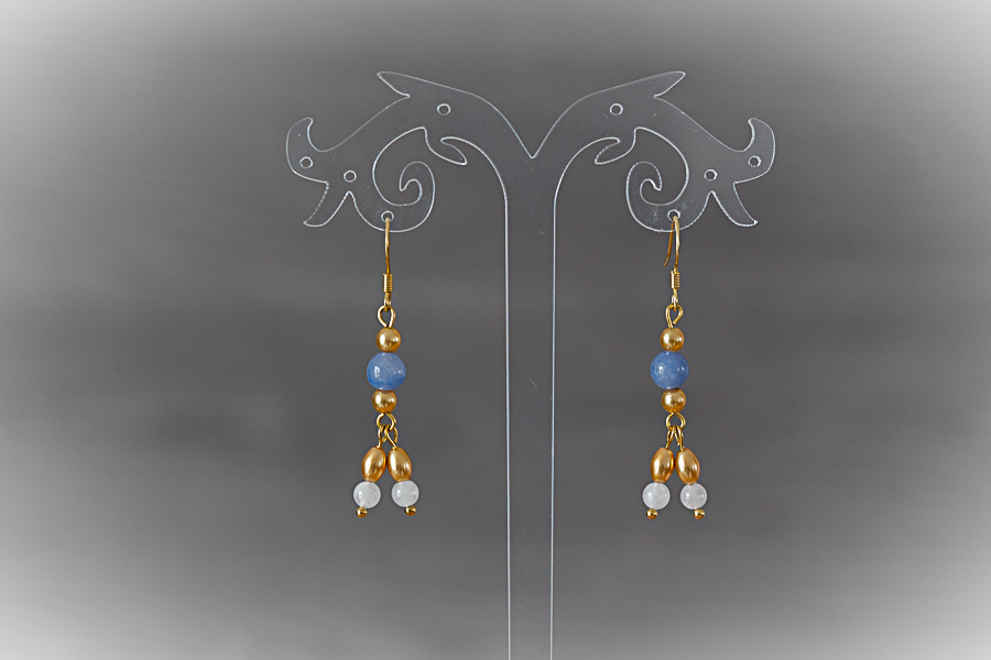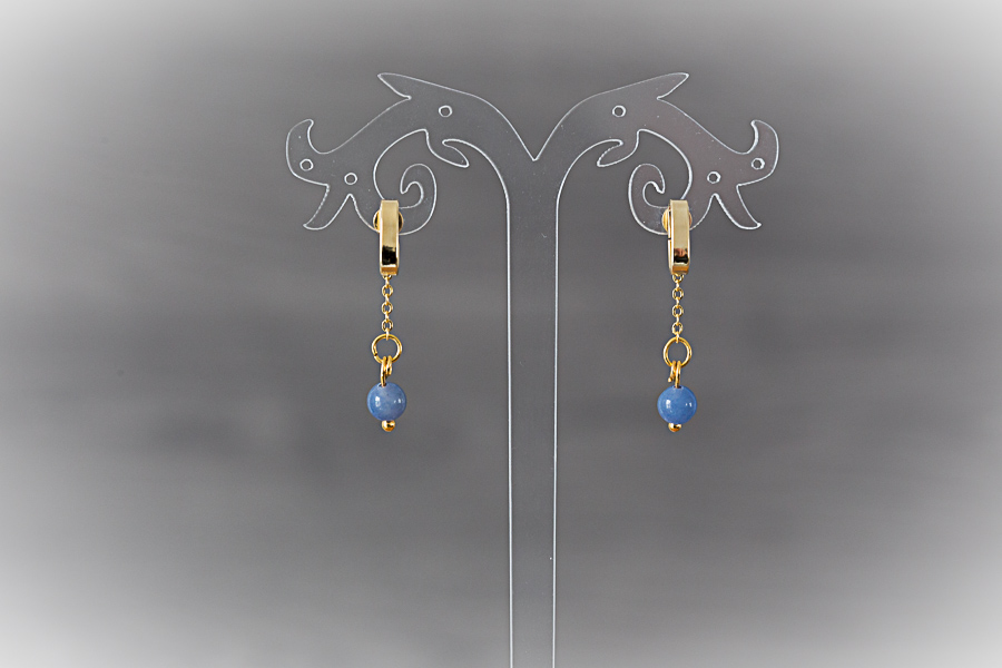 88 - Boucles d'oreilles dorées, aventurine Clous d'oreilles acier inoxydable doré or fin 24 K Composants laiton doré or fin 24 K Perles d'aventurine bleue 16 € |