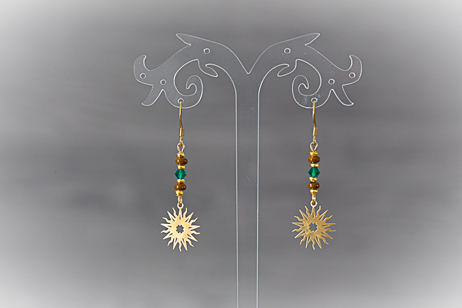 61 - Boucles d'oreilles soleil doré Crochets acier inoxydable doré Breloques soleils en laiton doré or fin 24 K Perles fantaisie 18 € |