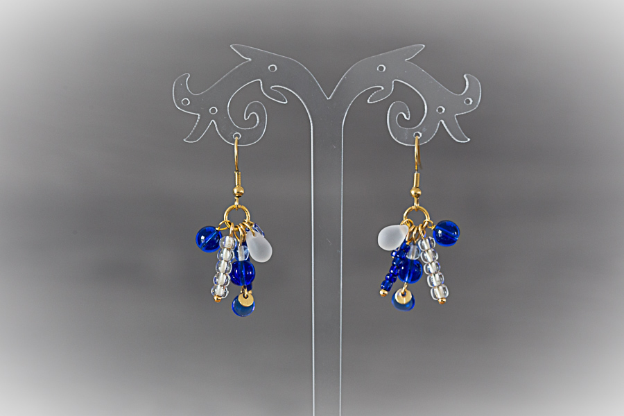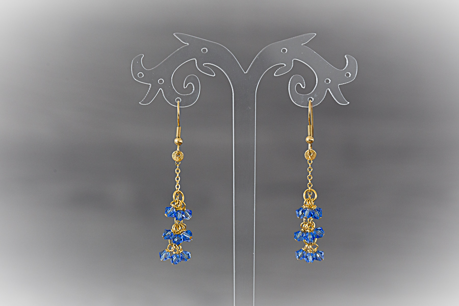 A31 - Boucles d'oreilles dorées, perles de cristal bleu Crochets acier inoxydable doré or 18 K, 19,5 mm Composants laiton doré or fin 24 K Perles toupies cristal bleu 15 € |