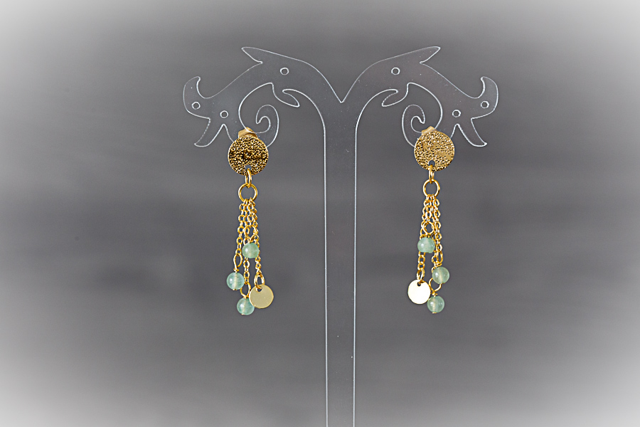 A15 - Boucles d'oreilles dorées, aventurine verte Clous d'oreilles acier inoxydable doré Composants laiton doré or fin 24 K Perles d'aventurine verte 12 € |